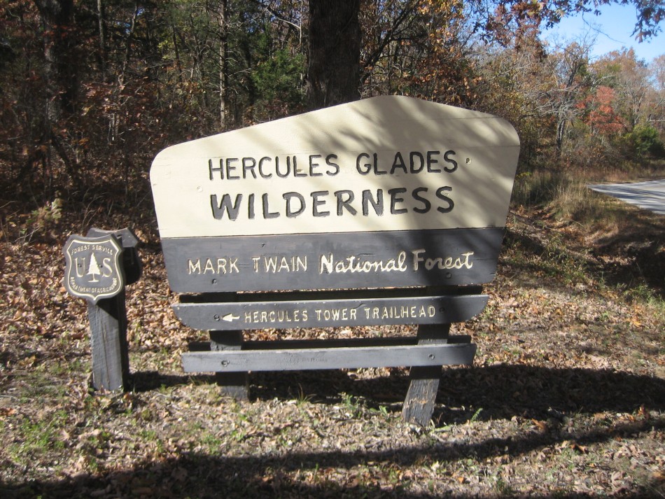 The Hike: The Hercules Glades Wilderness has three trailheads. The one used for this narrative is the Hercules Tower (aka Pilot) trailhead on the east side of the wilderness, and is accessed by Missouri Highway 125. Highway 125 is a good black top road and the entrance is a short flat gravel road suitable for any vehicle. The second is the Coy Bald Trailhead, on the west side. Take the Cross Timber Rd off US Highway 160 and follow it to Cane Creek. At the creek the road becomes rough gravel as it climbs the hill. It may not be suitable for low clearance vehicles. The third trailhead is to the south, off Blair Ridge Rd. There is a small parking lot just off the black top.