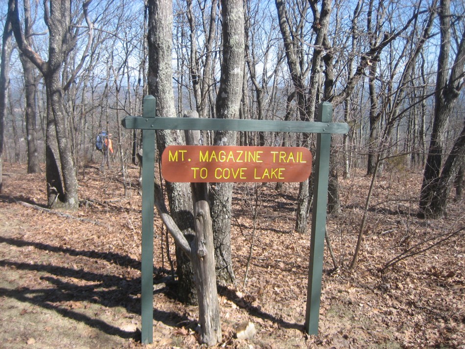 The Mount Magazine Trail begins on the north rim of Arkansas' highest mountain and ends a Cove Lake 9.8 miles to the north. It is a point to point hike but with three trailheads you have all the flexibility you need. The Map: The map is true 1:24,000 scale based on the USGS 7.5 minute quadrangles. The free downloadable image is accessed by clicking the map on the right. Color, weatherproof versions (11x17) of the map are available for $5 plus S&H by emailing cew5151@gmail.com. The trail was tracked with a GPS in February 2012 and is shown in red. The named waypoints are shown with the larger maroon circles and the mile markers and other points of interest with small maroon squares. Some of the roads are based on aerial photos and Google Earth imagery. GPS File: Right click this link to download the track in a gpx format. Save it to your computer and use your GPS software to load it to your GPS. There are 515 track points so if it exceeds your saved track capacity, you will need to break up into more digestible bites. Google Earth Track: Right click this link to download the track in the Google Earth kml format and trace the route in interactive 3D. Save it to your computer and open it with Google Earth. Alternatively, you can click on the map to the right and view the trail using the Google Earth API. The Hike:This description begins at the Cameron Bluff trailhead on the road to the scenic vistas. Coming in from Highway 309, go west at the road to the lodge and campgrounds. About a mile further you can either turn left to go to the lodge or turn right to go to the trailhead. Turning right, you will pass a one way road coming in from the right (no entry), pass the Cameron Bluff campground on your right (and Signal Hill Trail on you left) and then a one way road to the right. This is your turn. The blacktop road is Overlook Drive and will pass three scenic turnouts. The fourth one is has a short driveway with a stone CCC shelter at the end. This is a good place to organize you gear because about a hundred feet down Overlook Drive is the Mt Magazine trail. You can also start in the Cameron Bluff campground and take the short trail through the woods to the Overlook Drive TH. Before you start your decent, walk out to the edge of the bluff (video) because you won't get any good vistas on the trail. Forming the bluff and ringing the top of Mt Magazine is a layer of Savannah sandstone (Savannah Formation). This 300 million year old rock was deposited in a basin bounded by the Ozark highands to the north and the Ouachita Mountains to the south, known as the Arkoma Basin. Below the Savannah sandstone you can see the slope of the mountain taper to the plains below. This is the McAlester shale showing its weakness and inability to form cliffs. At the base of the mountain covered in pines is the Hartshorne sandstone. The Hartshorne is often associated with a commercially viable coal seam (Hartshorne coal) and was formed in an ancient delta system. The first 2.6 miles is downhill through the oak and hickory forest common to the Ozarks and Ouachitas. While there may be a few places where the leaf covered rocks might make footing a little precarious, it is a fairly gentle gradient (easy to say, I was going downhill). The trail is marked with white plastic diamonds but even without them you would have no problem finding it. There is one spot at milepost 8.5 where an unofficial trail continues straight while the Mt Magazine trail switchbacks to the left. (Note: regarding my reference to mileposts, only the ones that are integers refer to a physical mile post. Decimals such as 8.5 are estimates based on their position between physical mileposts.) Just prior to this junction you will see a trail marker turned sideways. This is marked on the map. At the foot of the mountain, you will cross a gravel road, pass a sign announcing that you just came 2.7 miles from Cameron Bluff and enter the Greenbench Rd Trailhead area. This brings up the discrepancy in mileage. The forest service (FS) map says 2.1 mile, the sign says 2.7 and my GPS said 2.6. The forest service map also say the trail is 9.3 miles long and the state park web site says 9.7. The signs on the trail have differing opinions. Looking at the map, I think the FS started their measurement from the state park boundary. I am starting at the road and I think it is possible that the park may have started measuring at the Cameron Bluff campground. I think the FS map's estimate for the mileage to Cove Lake is probably right so from Overlook Drive to Cove Lake Trailhead I have 9.8 miles. A little longer than the others sources but you can call it anything you want. At the Greenbench Trailhead (video) there is a picnic table and registration sign (video). And, when we were there, a stack of the official national forest map of the trail. This is one of the better national forest trail maps. It has contours, pretty close to 1:24,000, some of the forest roads, private lands and mileages. Most important, their depiction of the trail is very accurate. The next 3.1 miles will take you to the Corley Trailhead. The first mile is on fairly level ground as the trail crosses a level area underlain by Hartshorne Sandstone. You will notice that the character of the forest has changed to a pine-hardwood mix. In about 0.2 miles you will cross a small dam that separates a double pond. In another couple tenth the trail comes to the edge of the little "mesa" and follows the edge until mile post 6. I think it was just before milepost 6 where on the left was a small glade. Glades are small grassy areas, usually with cedar trees and sometimes prickly pear cactus and maybe yucca. They are caused by a tight and competent underlying rock unit (in this case, Hartshorne Sandstone) that prevents a thicker soil horizon from forming. The thin soil and tight rock keeps the pines and hardwoods from growing. The water runs off quickly making it drier so the cactus and yucca like it and are mor