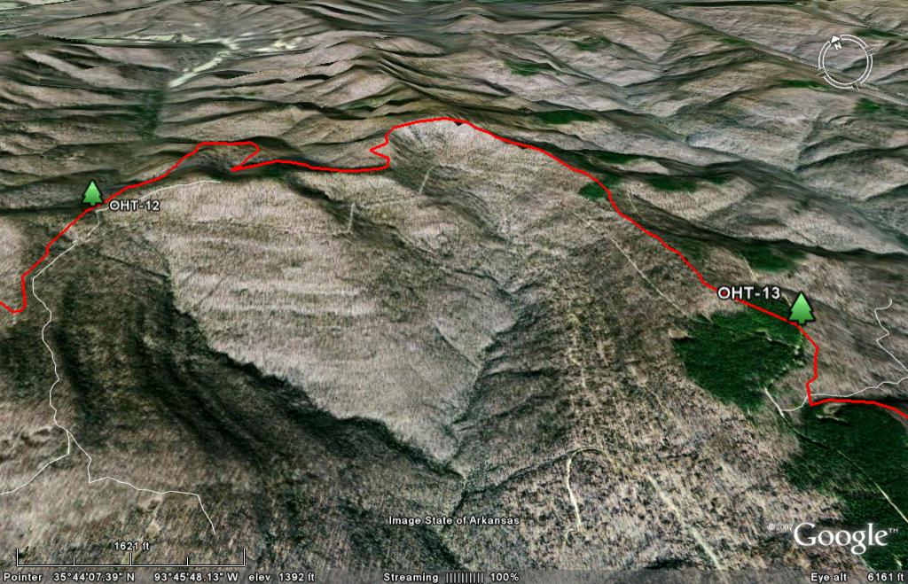 | OHT Map 12: Hurricane Creek to Fairview. Trail Description: See Fairview to Ozone. Google Earth Images: |