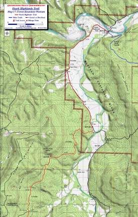 To Buy Map: If you don't want to take advantage of the FREE download, color weatherproof versions (11x17) of each map are available for $5 each plus S&H by emailing cew5151@gmail.com. A 20% discount is available if you want the entire set. That is $73 folded and delivered by mail in the US. Expensive, yes but cheaper than the $90+ for the full set of USGS topo, that don't have the trail. They are also available at Ozark Outdoor Supply in Little Rock and Pack Rat Outdoor Center in Fayetteville. |