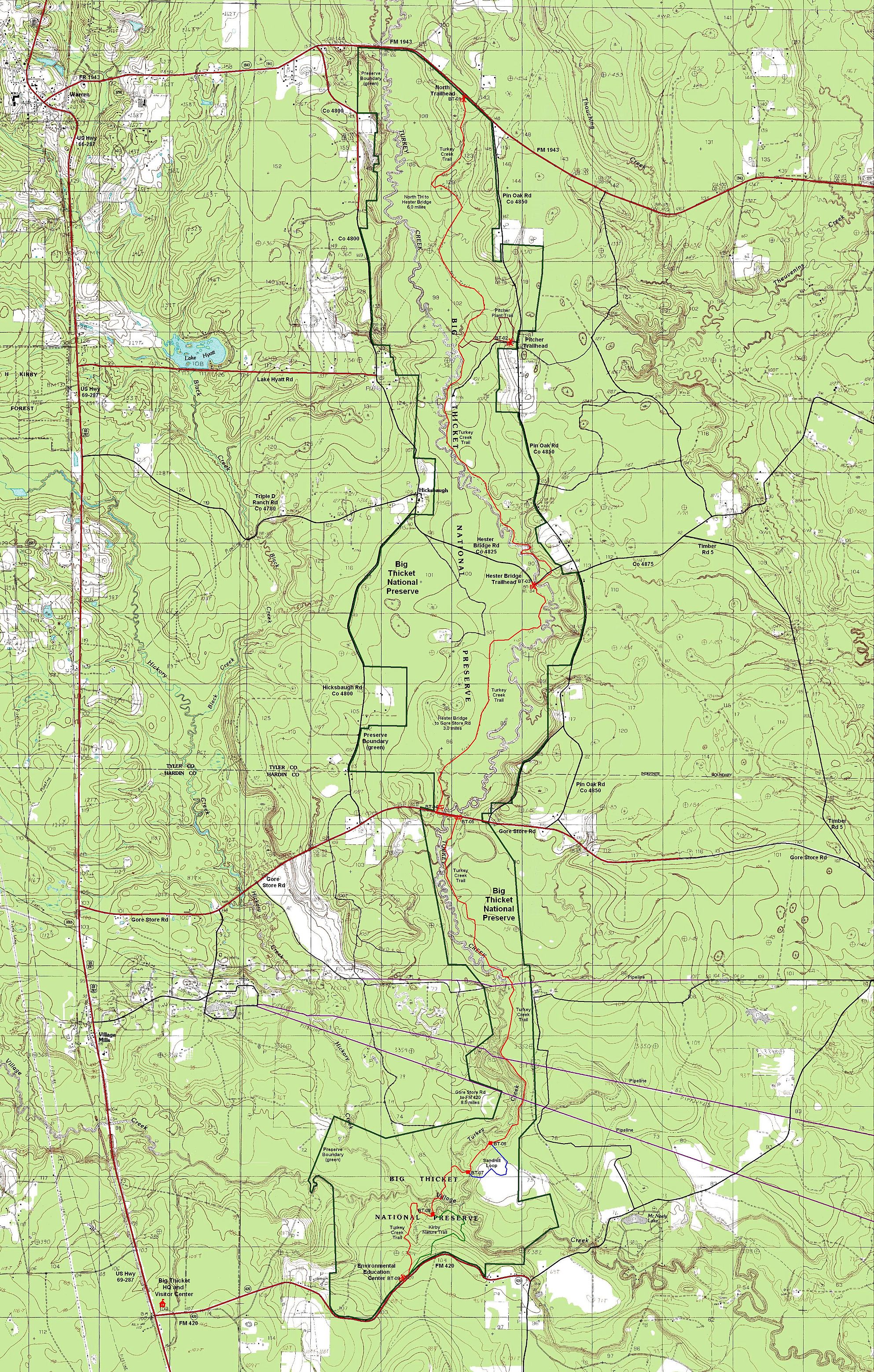 Location: For the south trailhead, go north out of Beaumont on US Highway 69-287 about 27 miles to FM 420. The Big Thicket Headquarters and Visitor Center is on the northeast corner. Take FM 420 east for 2.6 miles to the trailhead and Environmental Education Center.