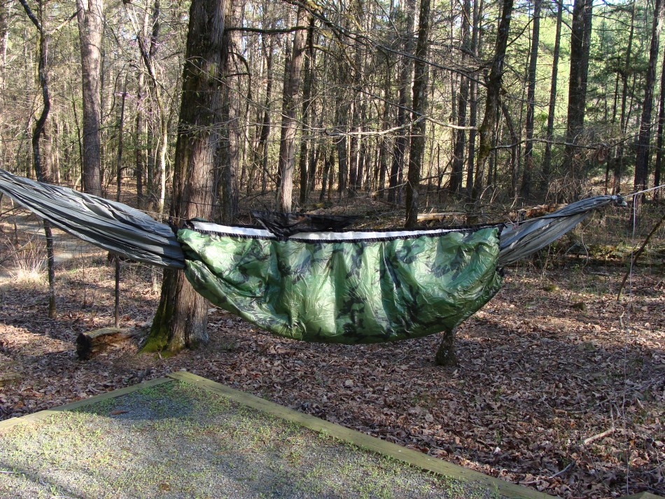 At Road 52600 the trail goes straight. To get to Sand Bar Campground, turn right, walk about a half mile to the Sand Bar bridge and cross the Cossatot. This bridge is higher than Ed Banks so it is less likely to flood. Looking downstream from the bridge you have a nice pool, upstream it is a bit shallower. The Sand Bar Campground is a developed campground with 14 tent sites. As with the other campgrounds it is on a first come basis with a self-pay box. There isn’t any running water at any of these campgrounds so figure on filtering river water. There are plenty of big trees in the campground, just perfect for my DIY hammock system. There was not another sole in the campground and that was nice!
