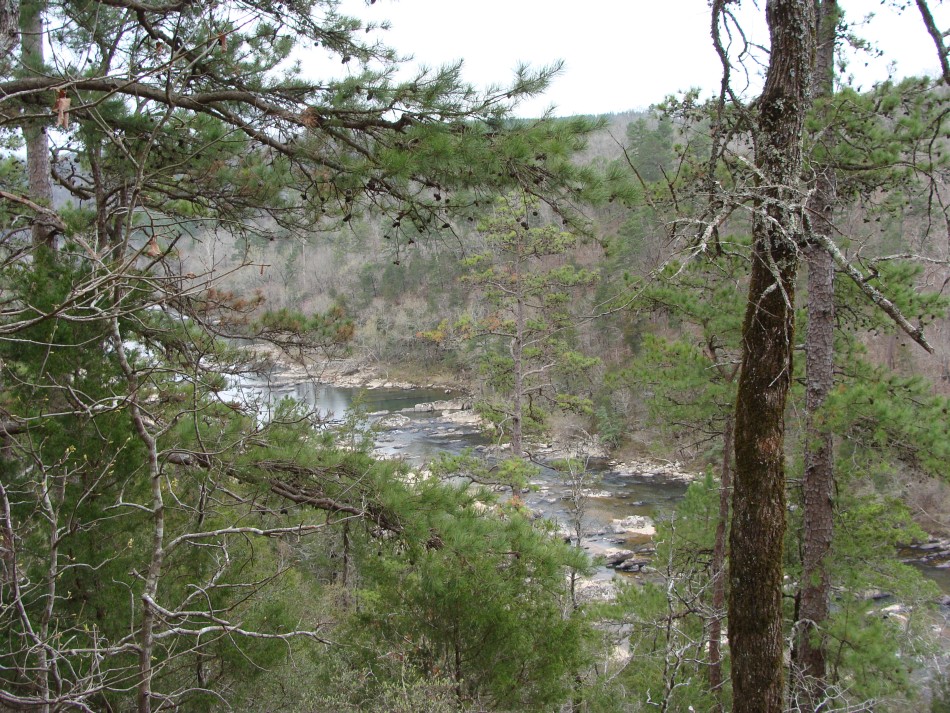 Leaving the Ed Banks area the trail starts to climb and you go thru lots of cedar. Below are lots of good of views of the Cossatot River. The trail continues high above the stream through lots of rock and plenty of redbuds. The river, even when low, has lots of interesting features that provide a hint of what attracts the whitewater enthusiasts.