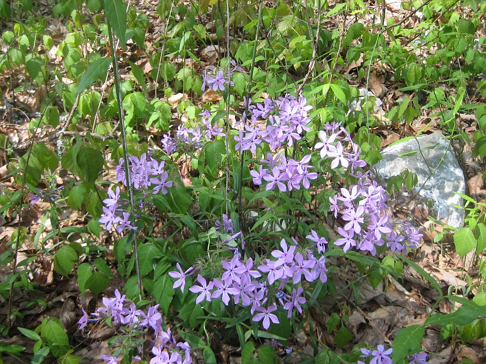 Depending on the season, you may see budding redbud, dogwood or blossoming fruit trees such as service berry and wild plum. The hollies are evergreen and prominent during the winter. Some of the flowers we have seen on the trail are downy phlox, blue star, fire pink and leaf sunflower.