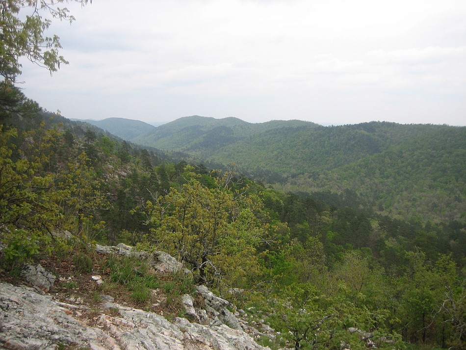 Background:The Eagle Rock Loop is located in the Ouachita Mountains. The Ouachitas are an east-west trending range that, in its entirety, runs from Atoka OK to almost Little Rock AR. They are characterized by east-west ridges that were the result of thrust faulting during the Ouachita Orogeny. The ridges are made of novaculite, a hard rock that is more resistant to erosion that the softer shales found in the valleys. The loop is in a sub-range called the Cossatot Mountains.