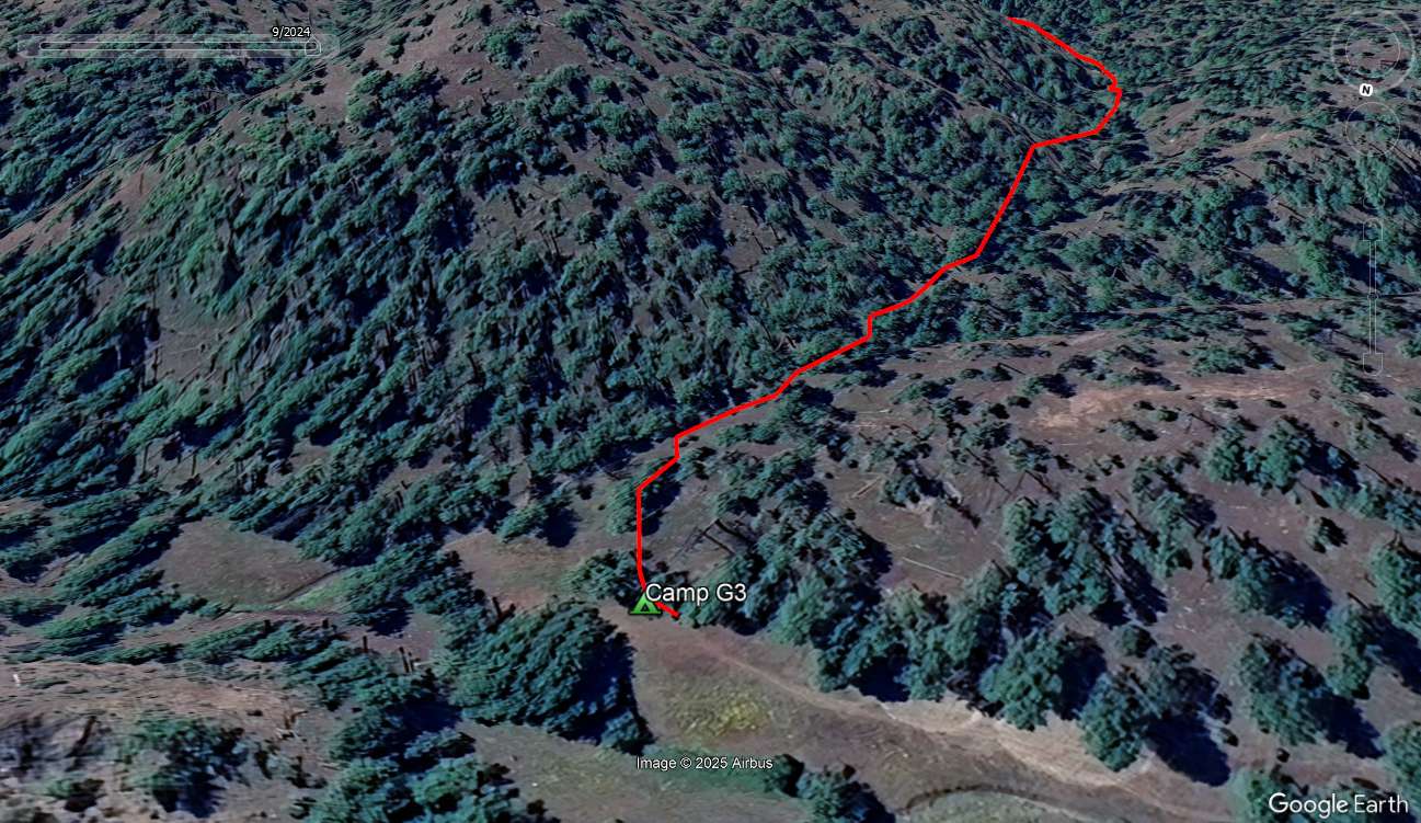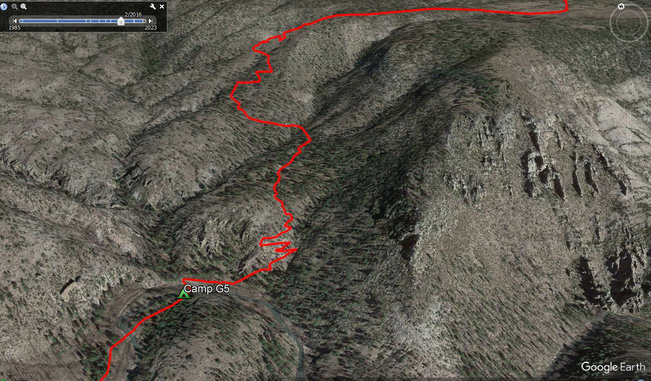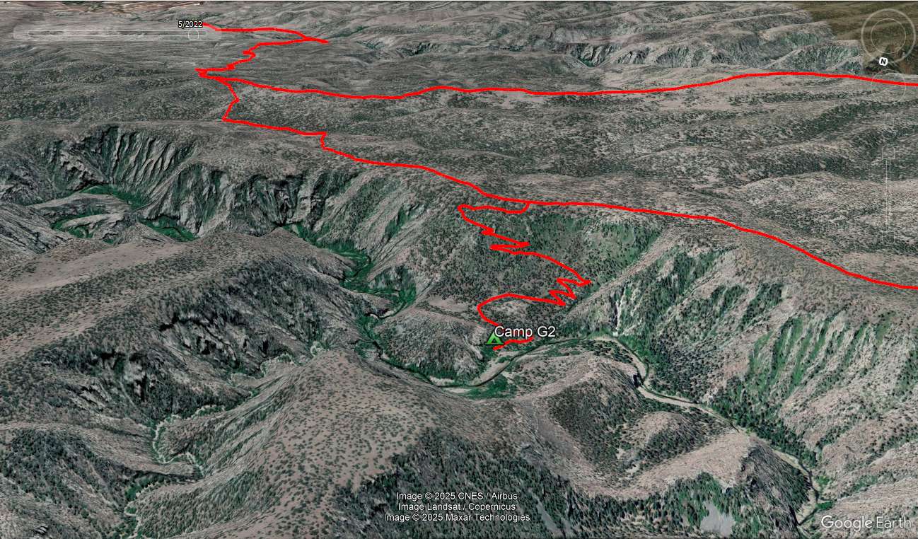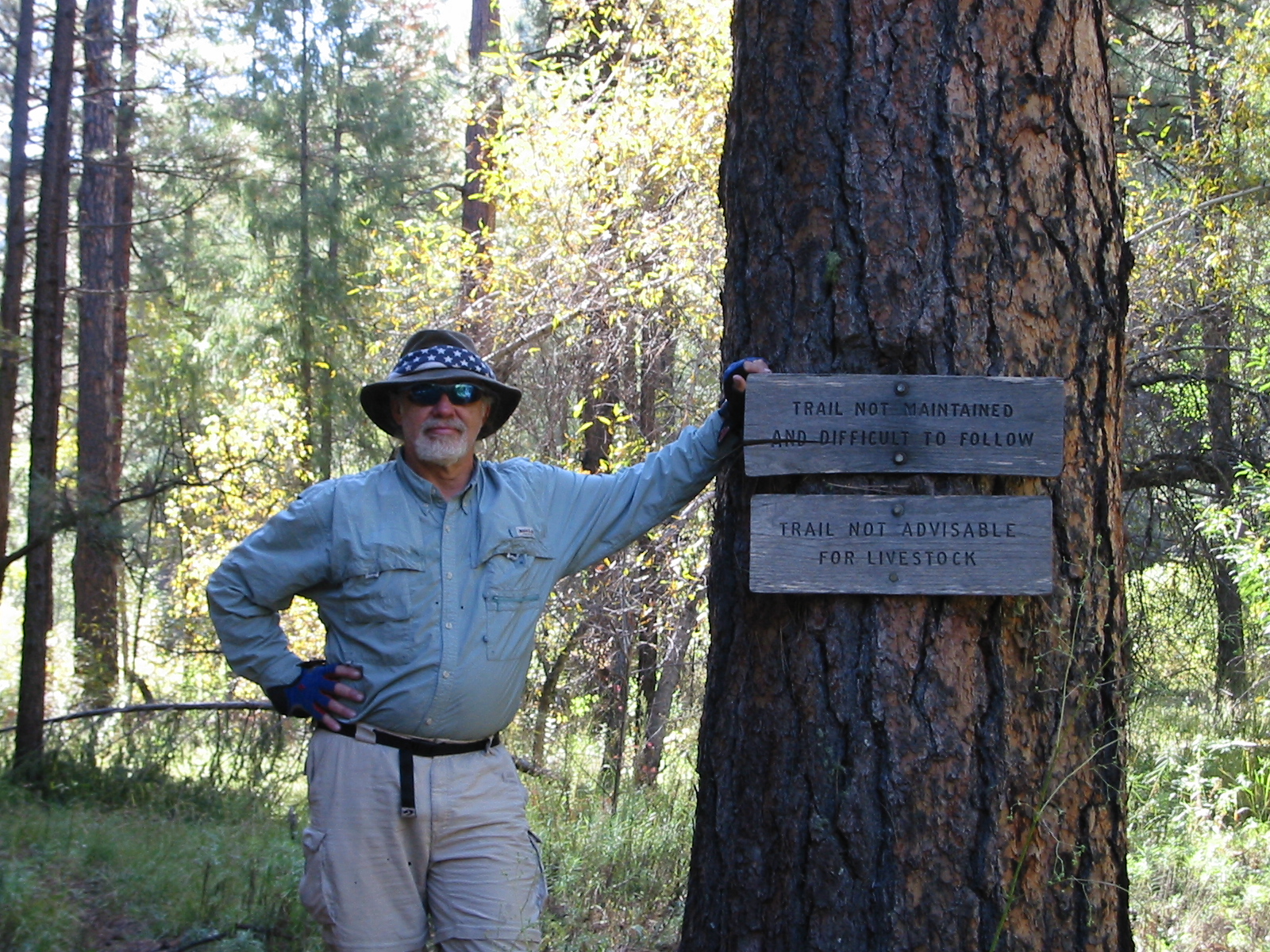 We left camp and backtracked to the Chicken Coop junction, but stayed on the Trotter until we got to the south edge of the mesa 7 miles later. Another mile dropping 1,000 feet on switchbacks and we reached our campsite on White Creek.