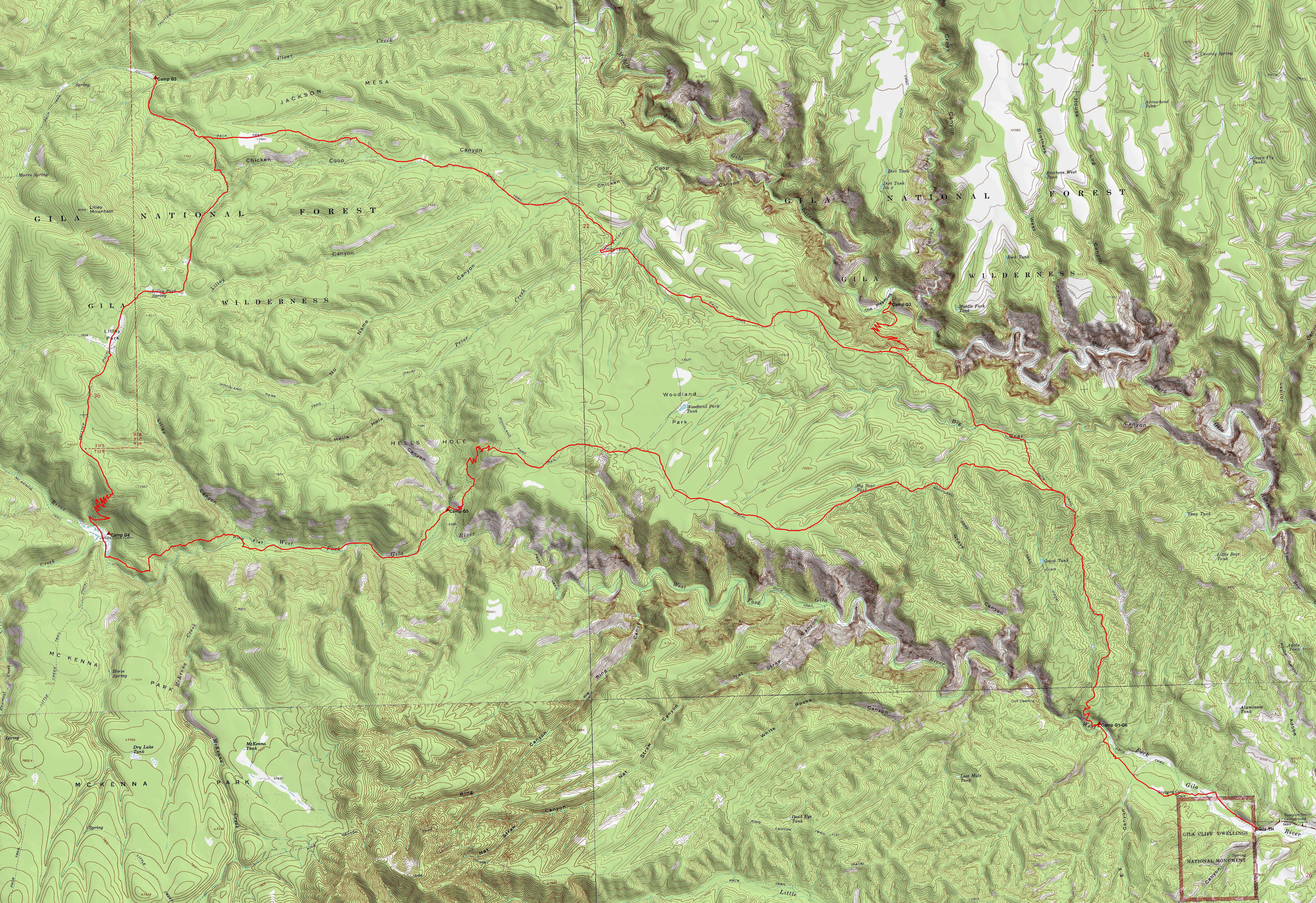 The trip begins and ends at the Gila Cliff Dwelling National Monument. You will doing yourself a real disservice if you don't take the tour at the beginning (do it while you are still fresh) or end (the others on the tour may not appreciate the stench of a week in the backcountry).