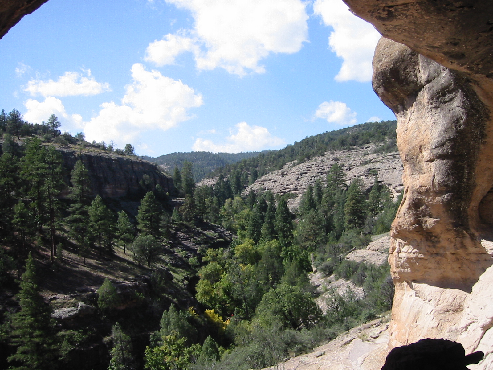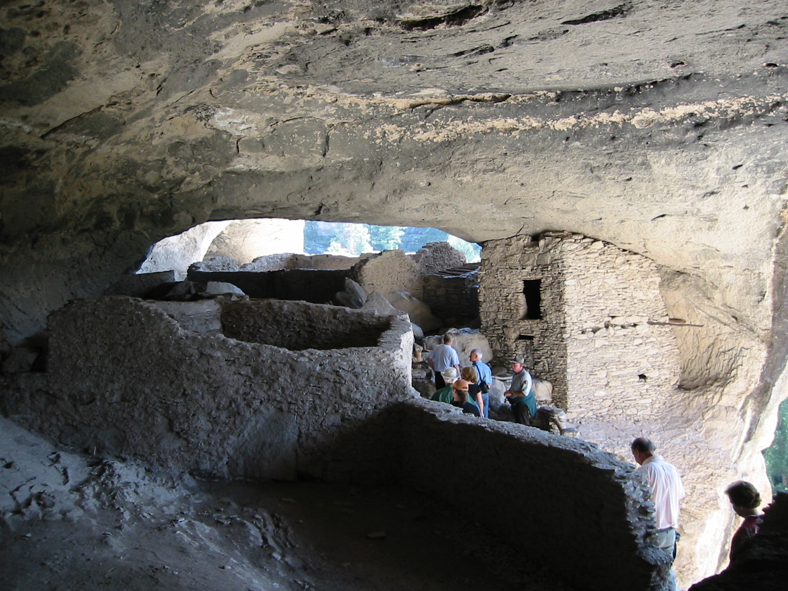 The dwelling are comprised of 40 rooms built in 6 natural caves. They are accessed by a one mile loop trail where you can see the cave opening from below. The guided tour begins at cave 1 at the west end where a ranger will brief you on the dwellings and give you some history about the Mogollon people that lived there 700 years ago. In the caves you will walk through rooms, see some artifacts and see the stone work of the outer wall of the dwelling. They had a great view of the valley below.