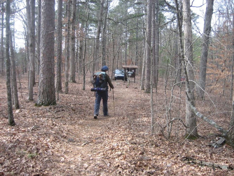 Ozone to Moonhull Mt (OHT Map 8): The hike begins at the Ozone Recreation Area on Highway 21, 16.8 mile north of Clarksville AR (OHT-27, OHT mile 85.6, trip mile 0.0). There is a well marked entrance to the trailhead parking lot on the left (northwest) side of the road. If you are shuttling from Morgan Mountain, use AR 215. It is paved from Highway 23 to Catalpa and is good gravel road to Highway 21 (FR 1003/Co 5440 where gravel). Save a few minutes by taking the Co 5440 cut-off from the Mulberry valley to Highway 21.