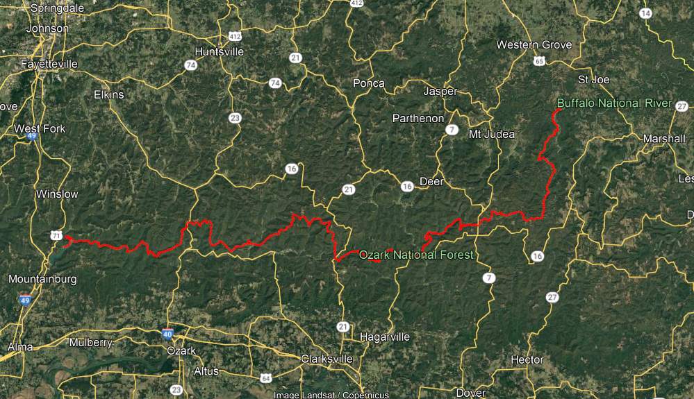 This page will focus on the original 164 miles from Lake Fort Smith to Woolum on the Buffalo River.