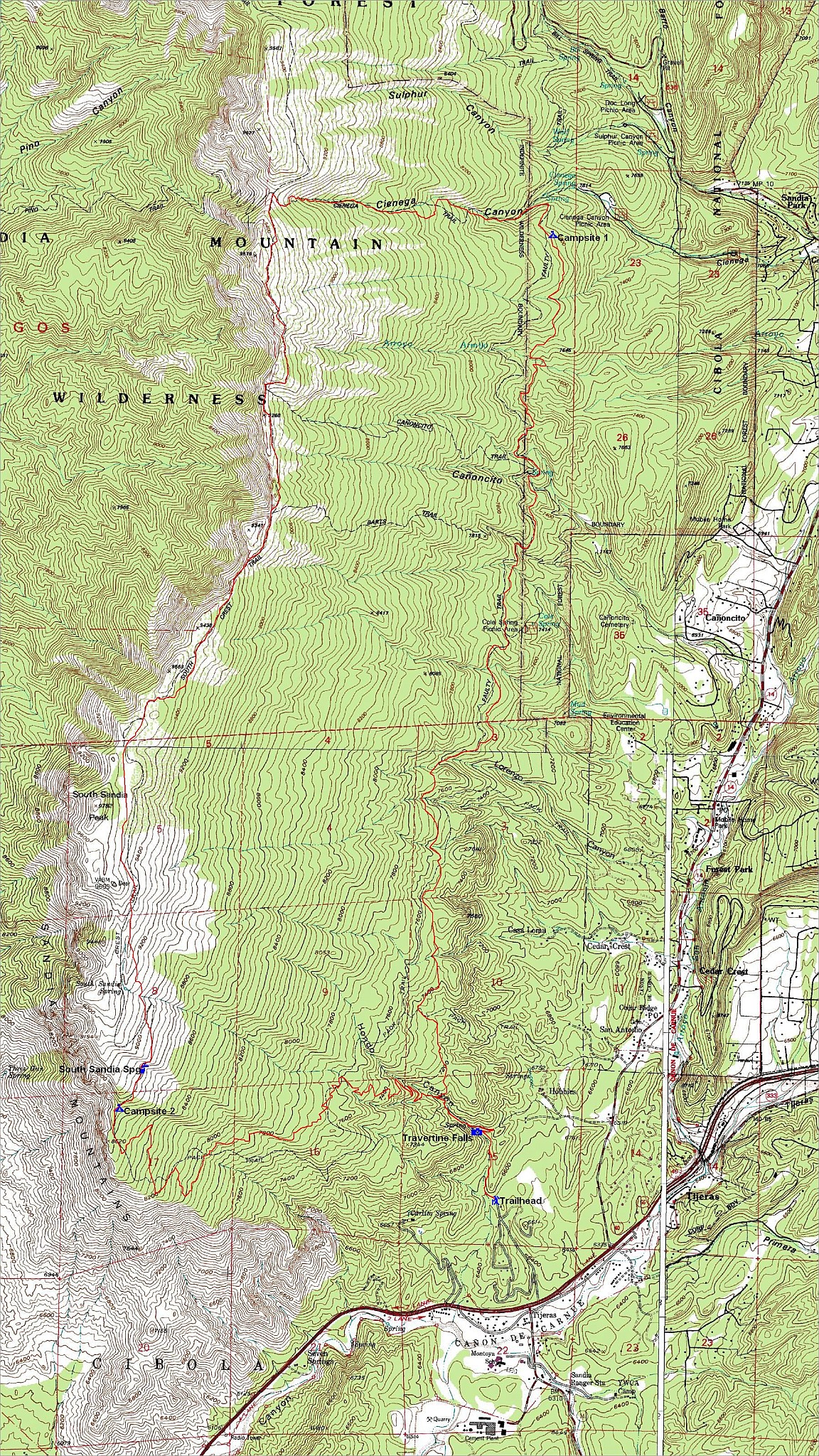 Free downloadable topo maps of the Sandia Wilderness.