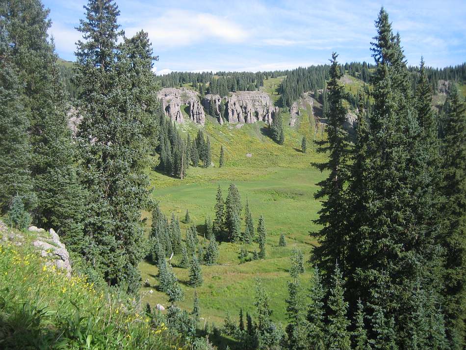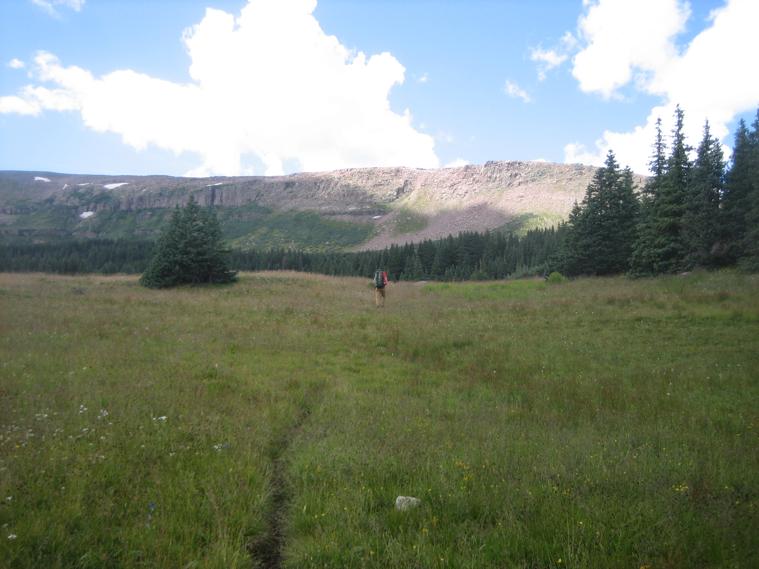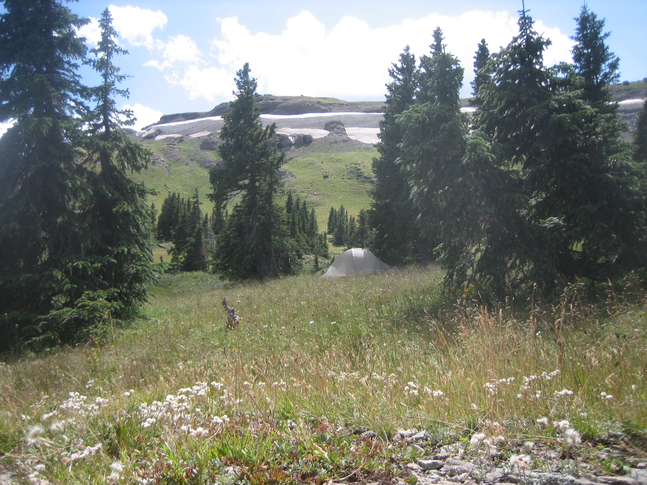 SJ-04 (3.7 miles) was our camp site on the Conejos Peak hike. Its an nice open meadow near a cascade on the South Fork of the Conejos.
