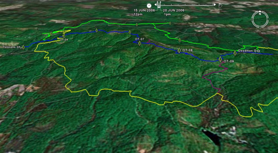 The Map: A free full size version of the map is available on this page as a downloadable jpg. It is also available printed in color on 11x17, "Rite in the Rain” all weather writing paper for $5 plus S&H by emailing Charlie at cew5151@gmail.com. The map is nominal 1:24,000 based on USGS 7.5 minute quadrangle topographic maps.The Loop was mapped with a WAAS enabled GPS and is drawn in different colors to designate each trail. The Ouachita Trail is shown in blue, the Choctaw Nation Trail is shown in yellow, and the Bohannon and connector trails in purple. Map includes forest roads not shown on the standard quads. Other features include trailheads, segment mileage, general directions to park, waypoints and waypoint coordinates.