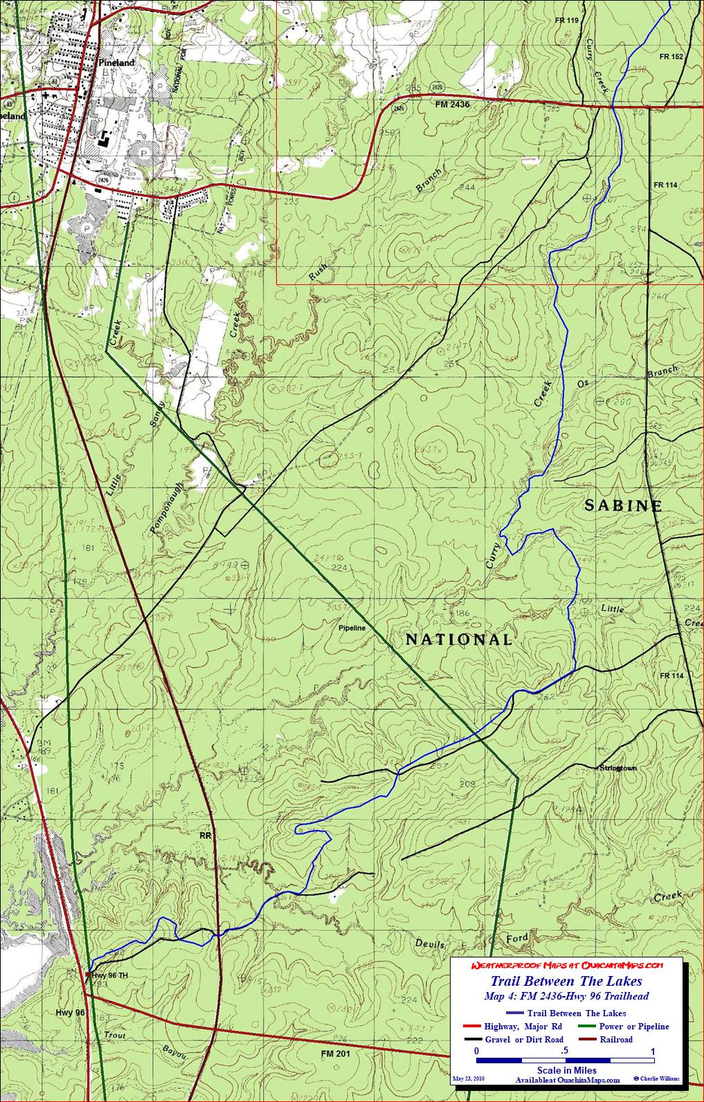 Info: USGS 7.5 minute Quadrangles: Pineland North, Pineland South, Hemphill and Negreet SW. Sabine National Forest, 5050 Hwy 21 East, Hemphill TX 75948, Telephone: (409) 625-1940.