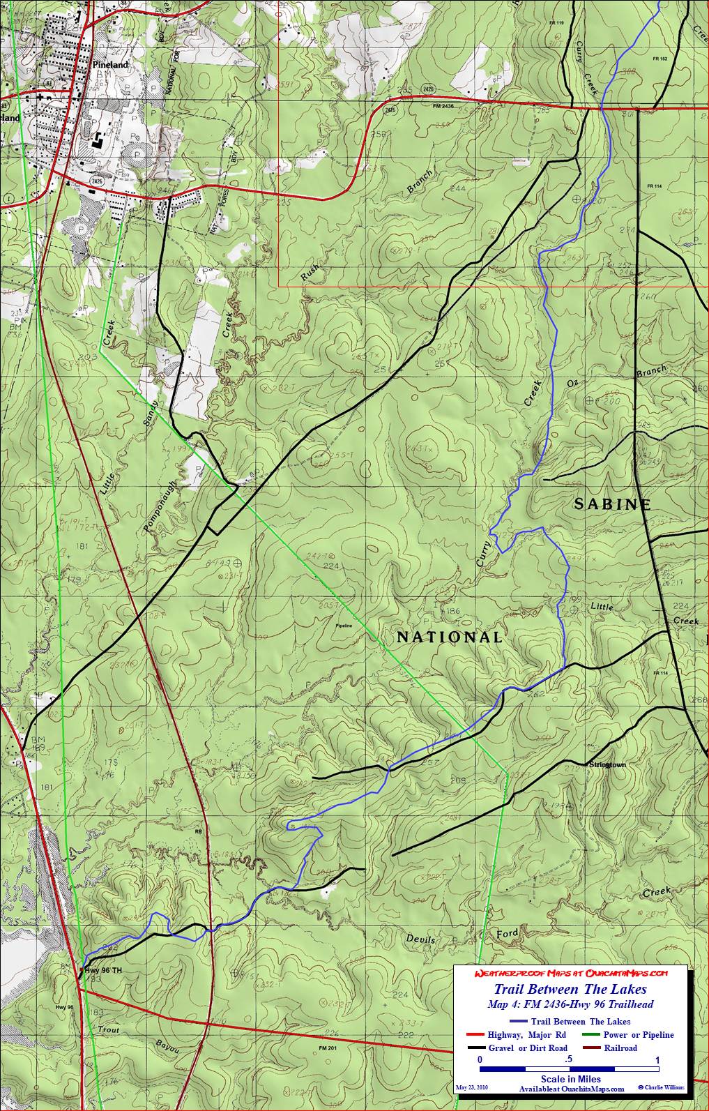 Info: USGS 7.5 minute Quadrangles: Pineland North, Pineland South, Hemphill and Negreet SW. Sabine National Forest, 5050 Hwy 21 East, Hemphill TX 75948, Telephone: (409) 625-1940.
