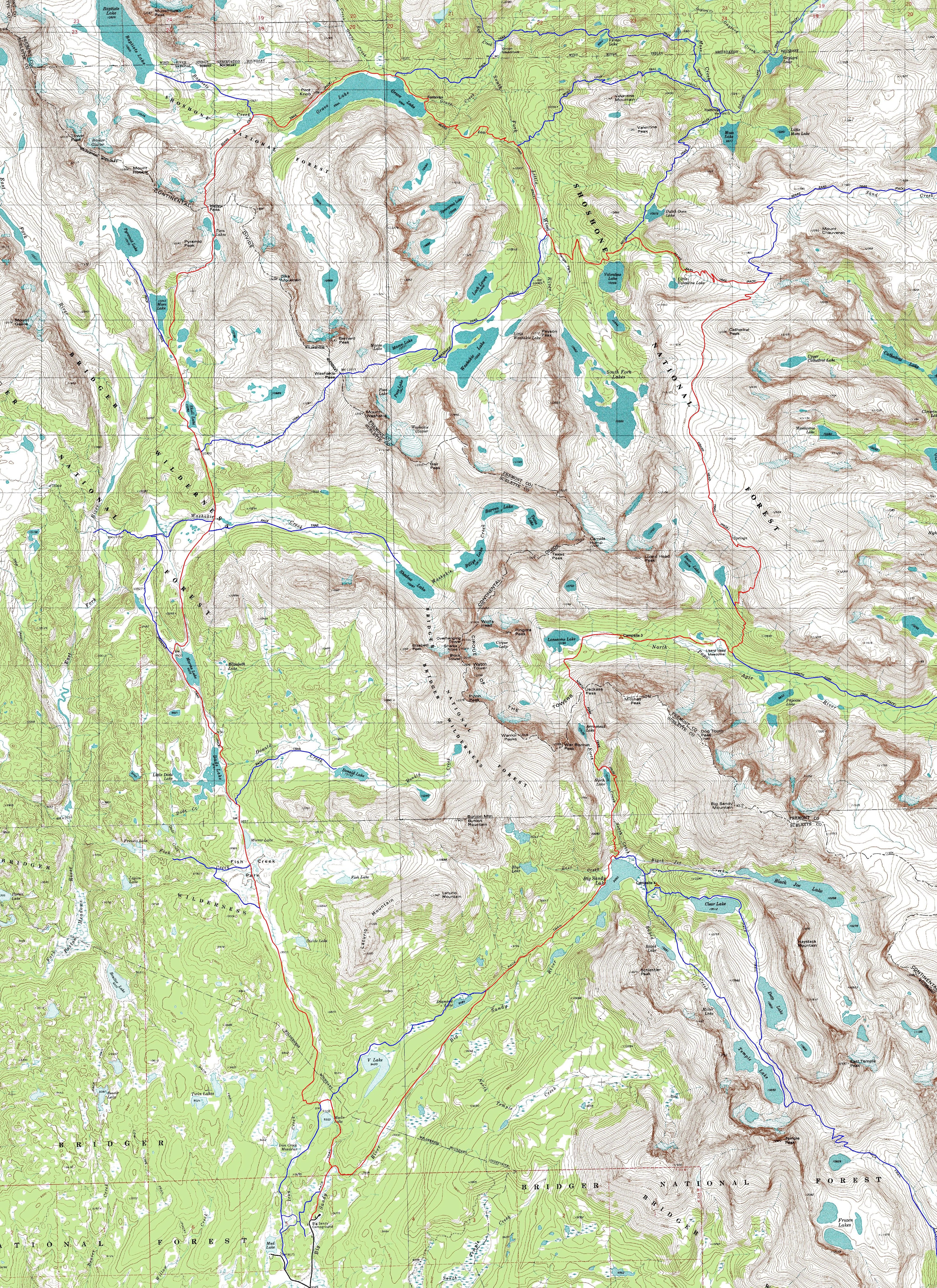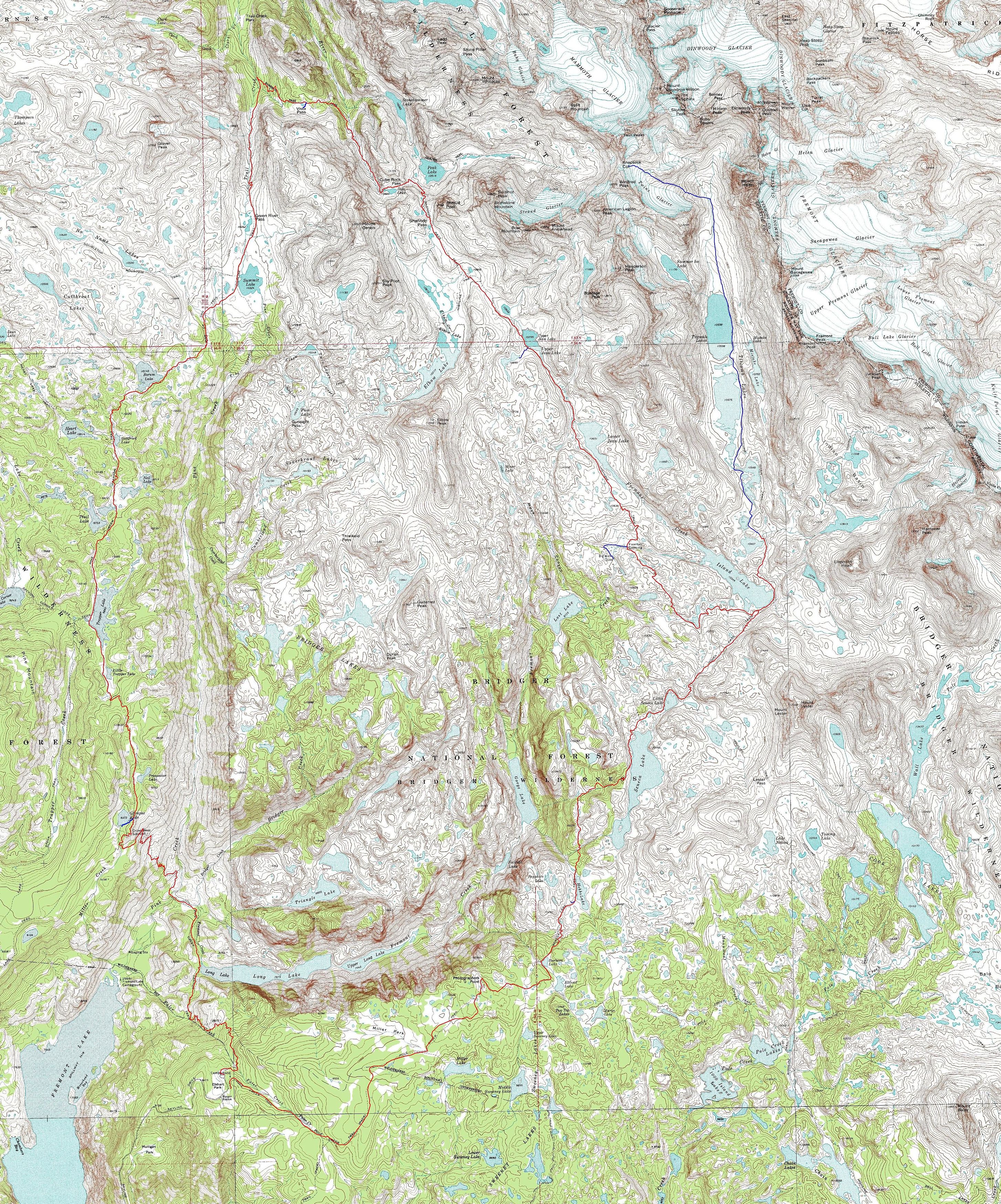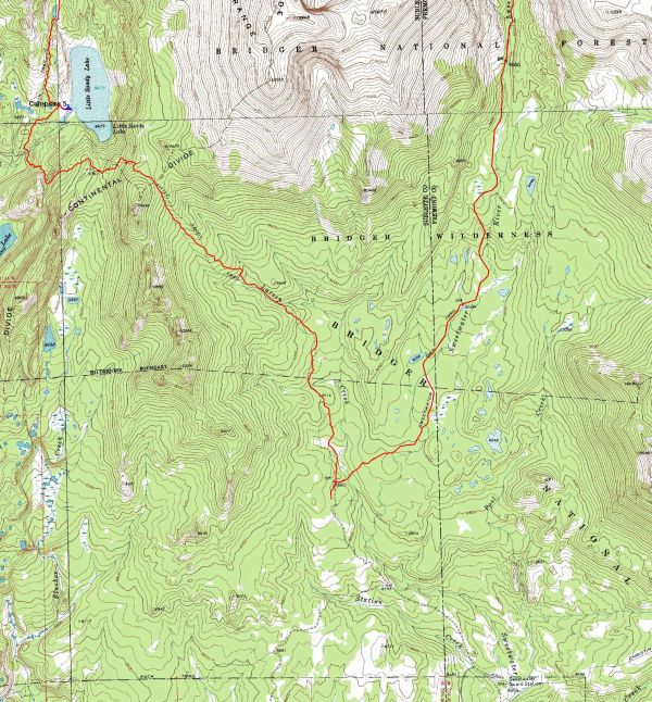 Bears Ear Loop: This is a preliminary map. We made the hike but I have not gotten around to finalizing it. It begins at the Big Sandy Campground, circles north to Hailey Pass and comes south past the Cirque of the Towers.