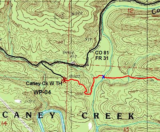 Directions to West Caney Creek Trailhead: Take State Hwy 375 southeast from Mena AR to Shady. Follow County 81 south for 5 mile (this is the only sign for the turnoff). Turn left at sign for trailhead access.