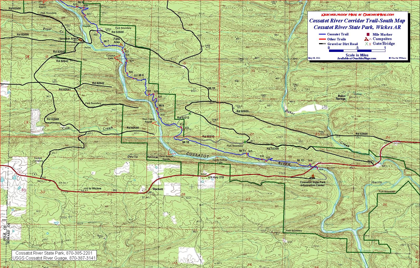 Free downloadable topo maps of the Cossatot Trail.