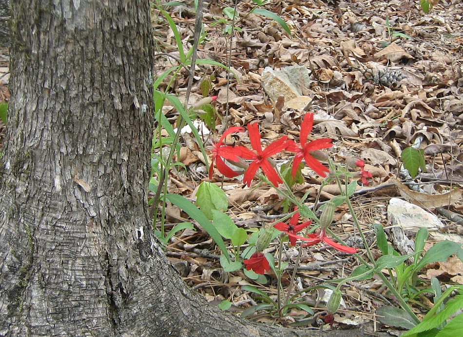 Depending on the season, you may see budding redbud, dogwood or blossoming fruit trees such as service berry and wild plum. The hollies are evergreen and prominent during the winter. Some of the flowers we have seen on the trail are downy phlox, blue star, fire pink and leaf sunflower.