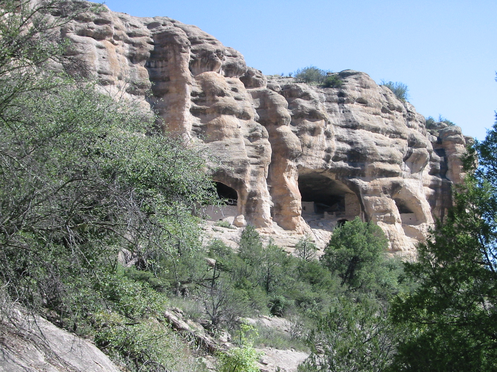 The dwelling are comprised of 40 rooms built in 6 natural caves. They are accessed by a one mile loop trail where you can see the cave opening from below. The guided tour begins at cave 1 at the west end where a ranger will brief you on the dwellings and give you some history about the Mogollon people that lived there 700 years ago. In the caves you will walk through rooms, see some artifacts and see the stone work of the outer wall of the dwelling. They had a great view of the valley below.