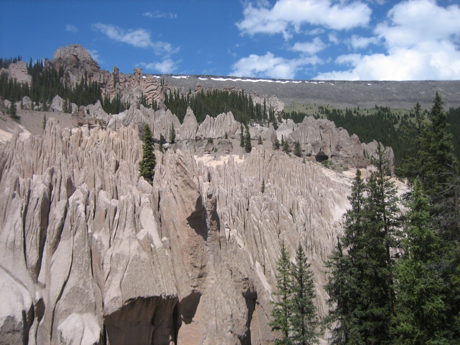 The La Garita-Wheeler hike begins at the La Garita Trailhead in the northeast side of the wilderness. It includes long hikes along meadows surrounded by towering spruce, a visit to the Wheeler Geologic Area, and a traverse of the Palmer Mesa. The entire trip is 23.6 miles.