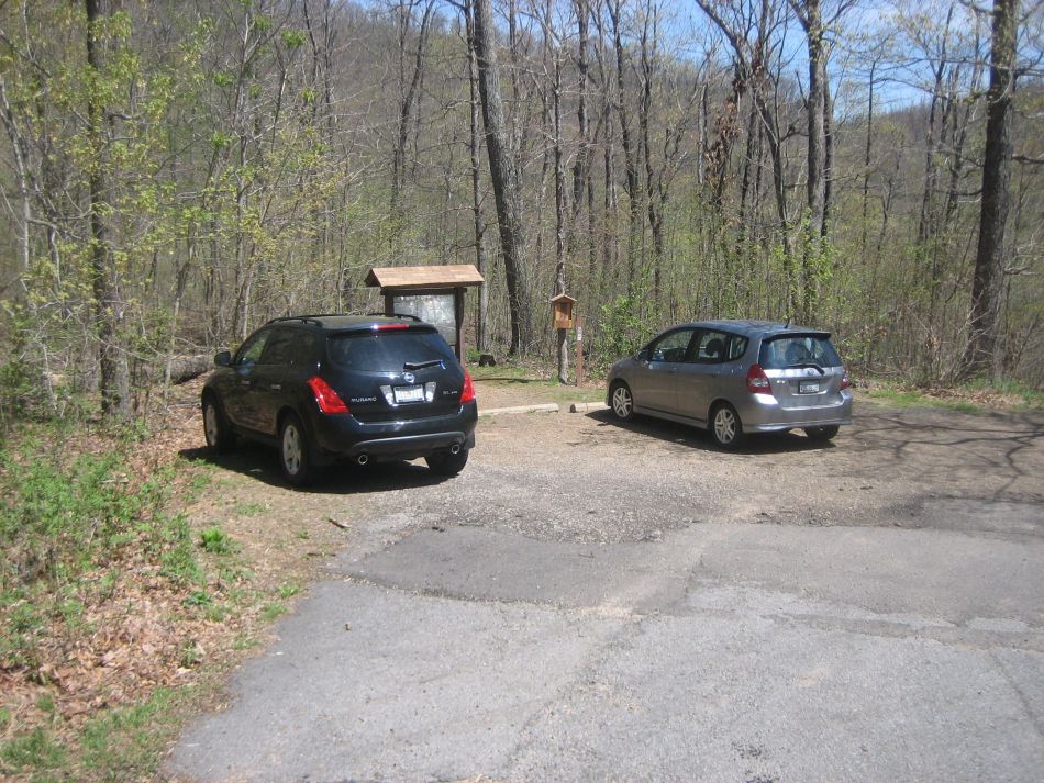 The trip to the Morgan Mountain trailhead is 1.6 miles along the ridge (video) of Morgan Mountain. The route is a gradual downhill with a few vistas. Along the way you'll pass through a small outcrop, see another rock wall and cross a minor forest road (video). When you reach FR 1505, the trail crosses the road and follows the wooded hillside. About 0.1 miles past the road is a sign and spur trail (video) to the trailhead parking lot.