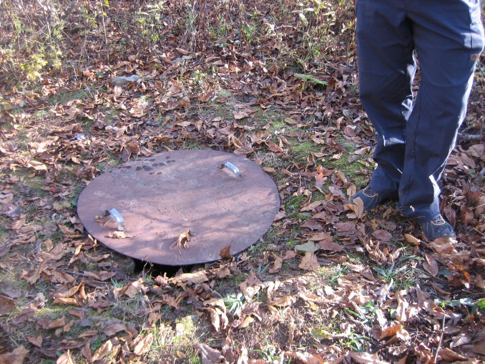 A few hundred feet beyond is the spur trail to the top of Hare Mt. It is a large flat area, albeit wooded, with a history of human habitation. Near the vista is an old rock wall. A few feet up the spur is the Arkansas fire pit and a picnic table. Follow the spur trail along the east side of the mountain for 0.2 miles and you will reach an old chimney and, a few feet further, the well. The well is now covered with a metal plate with handles that make it easy to slide off. The water should be clean and probably potable. However, I have no idea who has done what to it so I always filter or treat it.