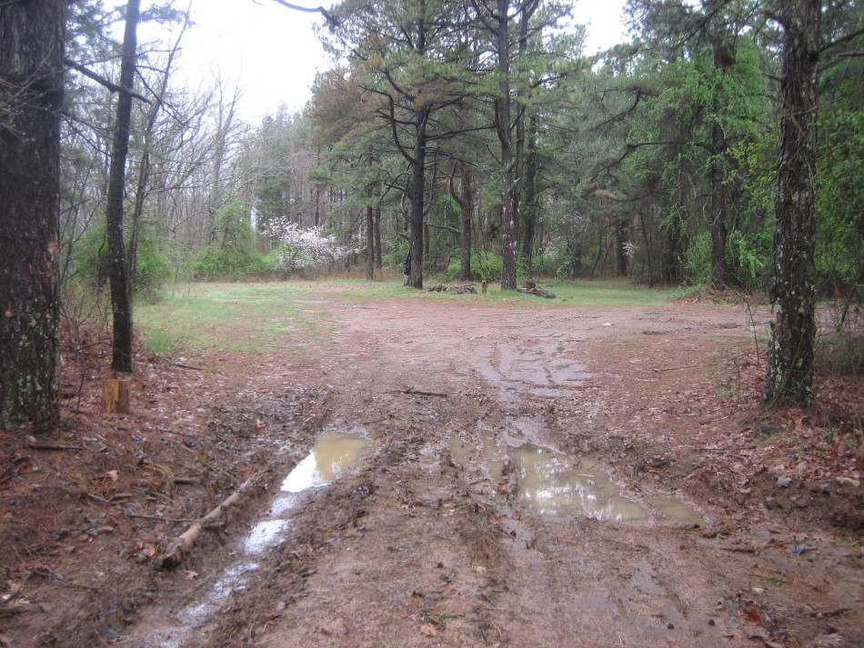 There was quite a bit of water in Lewis Prong (and this is before the rain) so although the crossing was a boulder hop, it was long and very tricky. The other side didn't have a real camp site, either. There was a small site literally next to the road about 100 feet up the trail but we passed on it for a nice little LNT camp between the trail and creek (video). You might be tempted by the large flat sandy area of woods a little closer to the creek. It looks inviting but the sand is due to water flow. After the flood at Albert Pike in 2010 and some of the other evidence of high water we have seen, we wanted a little higher ground.