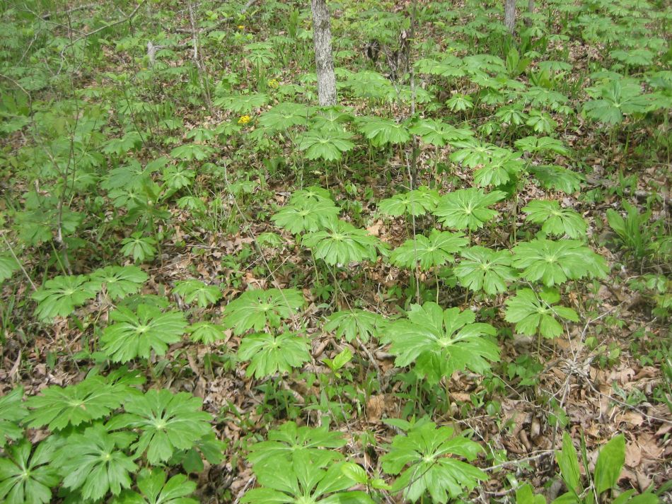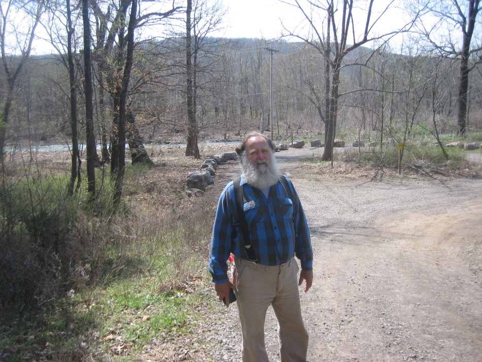 The ground cover was still the winter carpet of dead leave but even during the four days on the trail the new spring foliage was emerging. The earliest out were the phlox with their blue blossoms. We also saw pussy toes, spring beauty and bloodroot. Popping out of the forest litter like a tiny green bumbershoot with a yellow bell cap were the may apples. Though some were already open, their number had noticeably increased by our last day. By the time April comes, they can cover large swaths of forest floor.