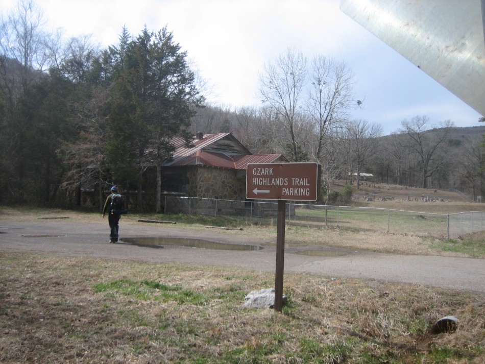 The trip from Big Piney to Ozone ia 19.9 miles. The OHT back that direction is at the back of the parking lot. There are some social trails there too, so watch for the white blazes as the trail heads due west. Head up hill crossing FR 1002 and into the woods. This is 1.2 miles to Haw Creek Falls Recreation Area. The short section is pretty, dominated by a huge rock next to the trail.