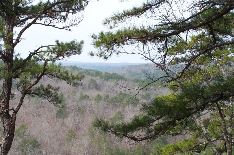 Background. The trail makes for an easy overnight backpacking trip. It is hilly, but an easy hike with relief changes of generally less than 300 feet. It is a typical Ozark forest of hardwoods and pines with leaves covering the rock strewn ground. As with any hiking in the Ozarks, the summers are very hot, the vistas hidden due to leave cover and water will only be found in the major streams. Hiking is best in the fall, winter and spring when the views are plentiful, insects gone and temperatures nice and cool for sleeping.