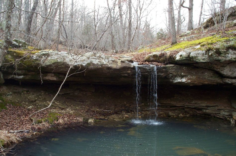 - Waypoint 14, 15.5 miles (N37.53313 W092.11339). Cross small creek. Small water fall and pool up stream from trail crossing.