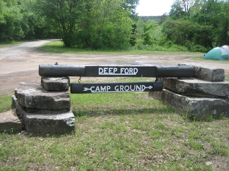 Just before RC-05 you will reach a small open valley and see the highway bridging the valley above you to the west (RC-05, mile 3.8). The trail goes under the highway and ends at the Deep Ford Campground. Turn left and follow the campground road to the low water dam. (If there is water under the bridge, you can also head up the south side of the valley to the treeline and work your way to the highway along a road trace that soon becomes part of the highway grading. Cross the highway, head south, step over the metal crash barrier and walk down to the asphalt park road. Turn left and go to the sign for Deep Ford Campground.) Cross the low water dam. If the water is too high, I suggest going a little further down stream and crossing the Fourche Maline where the channel narrows. In some ways this is the crux of the trip because if you can't cross, this trip doesn't work. Since you can drive to the crossing, check it out before you start your hike.