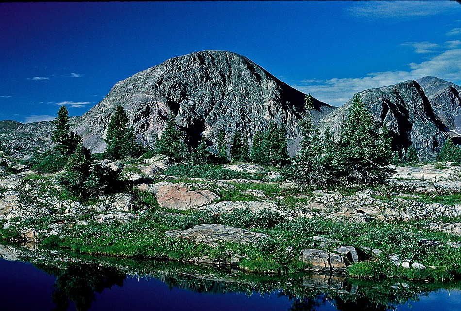 Stay on the CDT and descend to the Ute Basin. The basin is all above the treeline, with most of it above 12,000. It is covered with alpine grass, low shrubs and bare rock. Just before reaching Ute Lake, the Flint Lake Trail (#525) comes in from the south. We took it about a half mile to the first Flint Lake and set up camp (this one mile round trip excursion is included in the total trip mileage). There are great views of the unnamed peaks south of the Flint Creek valley. Back on the CDT, cross above Ute Lake at about 12,000 feet (mile 16.7).